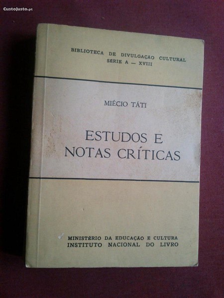 Biblioteca de Divulgação Cultural (Série A-XVIII)-Estudos e Notas Críticas por Miécio Táti-Ministério da Educação e Cultura-Instituto Nacional do Livro-Rio de Janeiro-1958