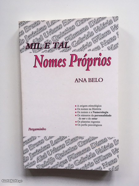 A melhor oferta que pode fazer ao seu filho, e com um valor duradouro, é um nome bonito que, com gosto ele use toda a sua vida. Nestas páginas encontrará, para os nomes mais usuais entre nós (mais de 1 000), a sua etimologia, as personagens célebres que o usaram, o seu número da personalidade, o seu planeta regente, os números do ser e do estar.