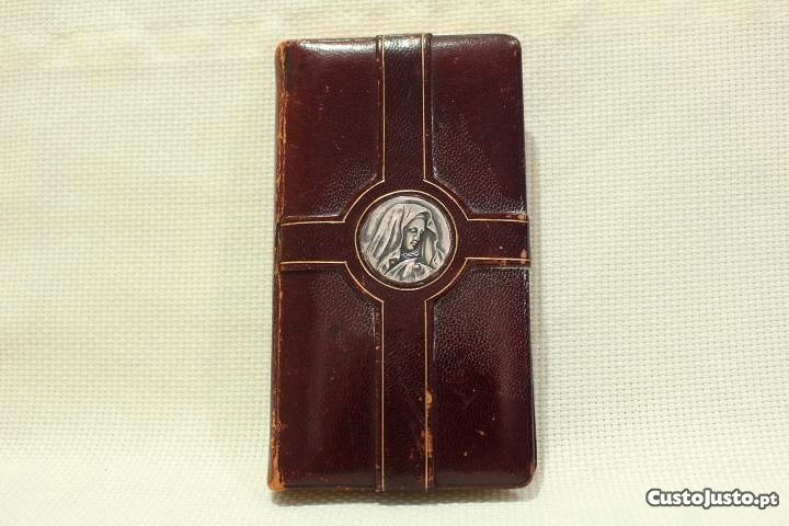 Missal Antigo Capa em pele Castanha com incrustação da imagem de N Senhora de Prata "L' Ame Croyante" publicado em 1900