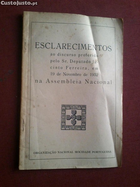 Esclarecimentos Ao Discurso Proferido Pelo Sr. Deputado Jacinto Ferreira,em 19 de Novembro de 1952 na Assembleia Nacional-O.N.M.P.