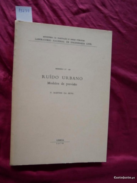 N 13239 - MOP LNEC Memória n 508. Ruido Urbano Modelos de Previsão. 1978. Pedro Martins da Silva. . 316 Pgs 17,5x25cm. Preço de mercado 27,00EUR + portes