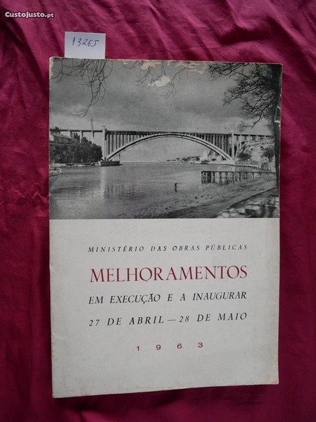 N 13265 - Ministério das Obras Públicas. Melhoramentos em Execução e a inaugurar 27 de abril a 28 de Maio de 1963. Fotos da Construção da Ponte da Arrábida. Início da construção da ponte Salazar. Barragem do Alto Rabagão. 17,5x24cm. 90 Pgs.