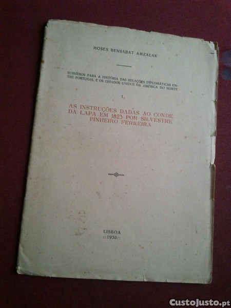 Moses Bensabat Amzalak-Subsídios Para a História das Relações Diplomáticas Entre Portugal e os Estados Unidos da América do Norte-I-As Instruções Dadas Ao Conde Da Lapa Em 1823 por Silvestre Pinheiro Ferreira-Lisboa-1930