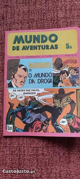 "Na presente revista, reproduz-se a história O Mundo da Droga, protagonizada por Mandrake, com direito a 23 páginas num formato de 4 tiras por página. Esta BD foi orginalmente publicada sob a forma de tira diária em jornais norte-americanos entre 3 de julho e 21 de outubro de 1972. O argumento é do seu criador, Lee Falks, tendo Mandrake sido publicada pela primeira vez em 11 de junho de 1934. Quanto aos desenhos desta história, são da responsabilidade de Fred Fredericks.