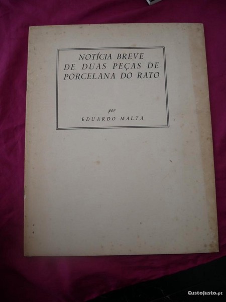 N 14563a Notícia breve de duas peças de porcelana do Rato por Eduardo Malta. 5 Pgs. Um pouco manchado. 29 cm. Separata do beletim da SNBA. 1952? RARO.