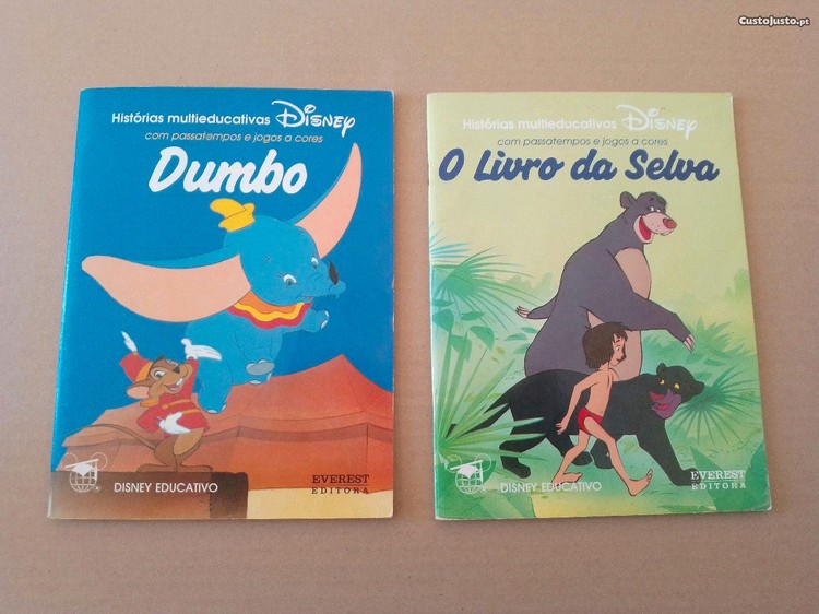 Par de livros dos filmes da Disney "O livro da selva/Dumbo" da colecção Disney Educativo-Histórias multieducativas com passatempos e jogos a cores. Edição da Everest Editora, Lda. no ano de 1994. Têm 32 páginas, capa mole, formato normal e estão em bom estado. Baratos para desocupar. Negociável, vendo pela melhor oferta. Faça a sua oferta