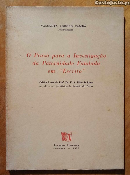 Vassanta Porobo Tambá Livraria Almedina Crítica à tese do Prof. Dr. F. A. Pires de Lima ou, do «erro judiciário da Relação do Porto. Coimbra, 1970. Com índice analítico. 62 páginas. Sinais de envelhecimento na capa, miolo como novo, com cadernos fechados. Valor inclui portes em correio editorial.