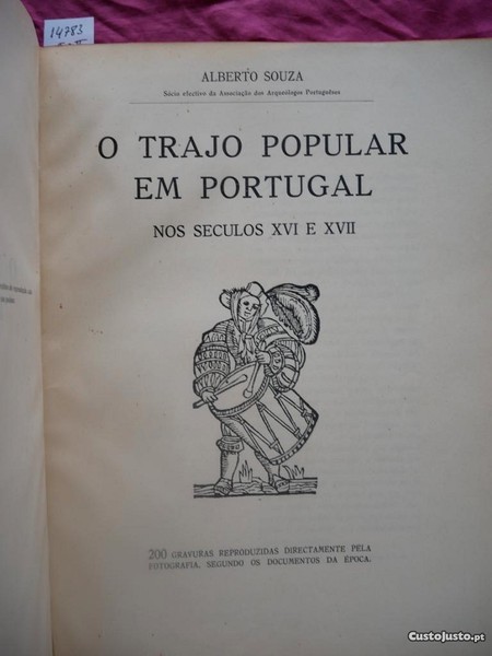 N 14783 O Traje Popular em Portugal nos séculos XVI e XVII. Alberto de Souza. 200 gravuras reproduzidas directamente pela fotografia, segundo o documento da época. 24x32cm. (XVI) 79 Pgs.