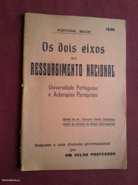 Portugal Maior-Os Dois Eixos do Ressurgimento Nacional:Universidade Portuguesa e Autarquias Paroquiaes-Carta ao Sr. General Oscar Carmona,Chefe de Estado da Nação Portuguesa-Resposta a Uma Chama Governamental por Um Velho Professor