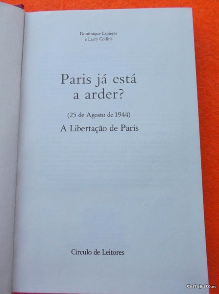Livro de Dominique Lapierre / Larry Collins - Paris já está a arder? . Editora: Círculo de Leitores de 1978 com 325 páginas de capa dura . Livro em muito bom estado . Inclui portes em correio normal .