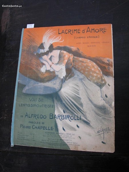 N 9414 Partitura Musical. Lacrime dAmore. Valse de Alfredo Barbirolli. 1913. Capa de Clerice Freres. 8 páginas. Sinais de uso.