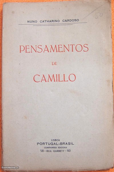 Livro de Nuno Catharino Cardoso - Pensamentos de Camillo reunindo 291 pensamentos do fecundíssimo e brilhante escritor , 1. edição da editora Portugal-Brasil de 1923 com 63 paginas de capa mole . Livro em muito bom estado . Inclui portes em correio editorial .