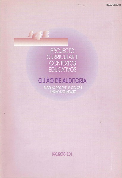 Preço: 4 €Projecto Curricular e Contextos Educativos - Guião de Auditoria - IGE-MEC - Projecto 3.04