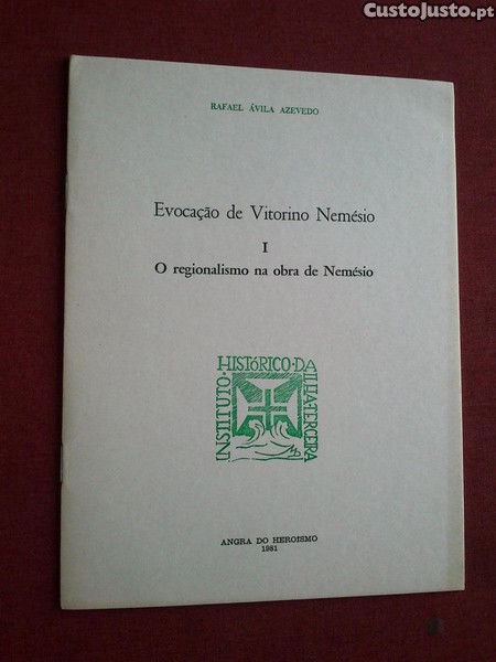 Rafael Ávila Azevedo-Evocação de Vitorino Nemésio-I:O Regionalismo na Obra de Nemésio-Angra do Heroísmo-1981