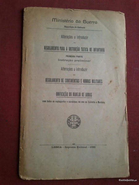 Ministério da Guerra (Repartição do Gabinete)-Alterações a Introduzir no Regulamento Para a Instrução Táctica de Infantaria,Primeira Parte:Instrução Preliminar-Alterações a Introduzir no Regulamento de Continências e Honras Militares-Unificação do Manejo de Armas Com Todas as Espingardas e Carabinas Em Uso no Exército e Marinha-Lisboa-Imprensa Nacional-1920