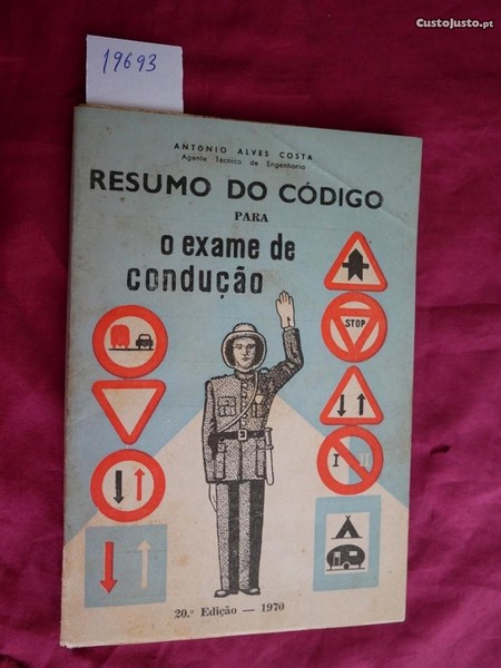 N 19693 Resumo do código para o exame de condução por António Alves Costa. 20 Edição 1970. 127 Pgs. 12x17cm.