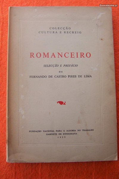 Livro de Fernando de Castro Pires de Lima - Romanceiro . Edição: Fundação Nacional para a Alegria no Trabalho , Gabinete de Etnografía de 1959 com 190 páginas de capa mole . Livro em bom estado . Inclui portes em correio editorial .