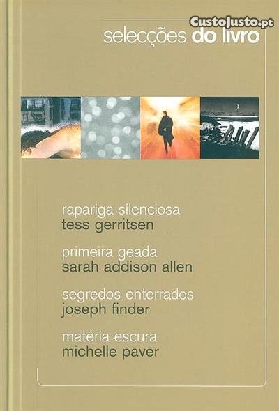 Rapariga silenciosa / Tess Gerritsen. Primeira geada / Sarah Adison Allen. Segredos enterrados / Joseph Finder. Matéria escura / Michelle Paver ; trad. Filipa Sacoto. - 1 ed. - Amadora : Selecções do Reader's Digest, 2016. - 574, [2] p. ; 22 cm. - (Selecções do livro). - Tít. orig.: The silent girl. First frost. Burried secrets. Dark matter. - ISBN 978-972-609-660-3