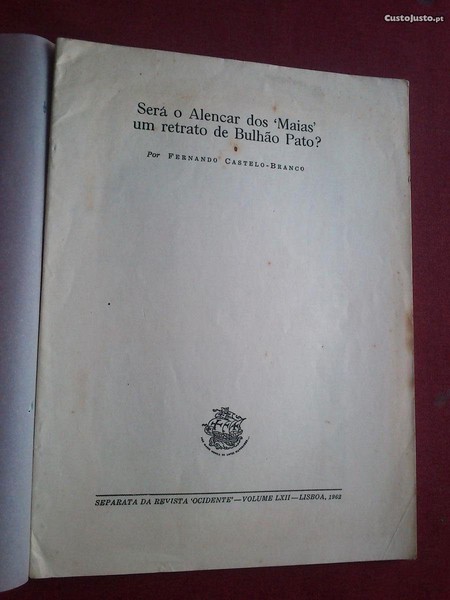 Será o Alencar dos "Maias" Um Retrato de Bulhão Pato? por Fernando Castelo-Branco-Separata da Revista "Ocidente"-Volume LXII-Lisboa-1962