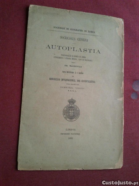 Sociedade de Geographia de Lisboa-Sociologia Chinesa-Autoplastia-Transformação do Homem Em Animal-Estiolamento e Atrophia Humana,Casos de Teratologia Pelo Dr. Macgowan-Nota Destinada à X Sessão do Congresso Internacional dos Orientalistas Pelo Tradutor Demétrio Cinatti-Lisboa-Imprensa Nacional-1892