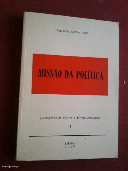 Vasco da Cunha D'Eça-Missão da Política (Colectânea de Ensaios e Artigos Dispersos)-Lisboa-1969