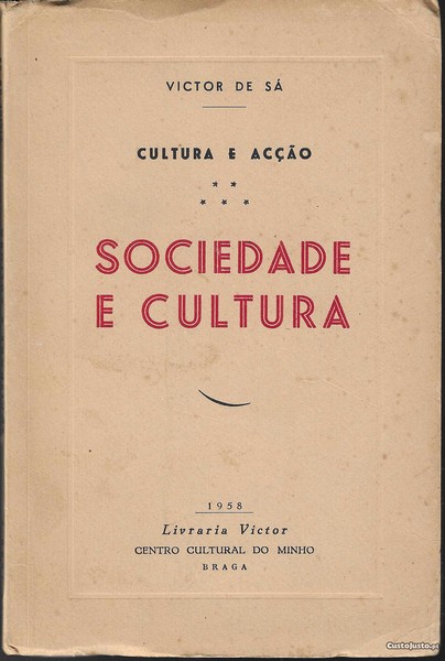 Victor de Sá. Sociedade e Cultura. Braga, Livraria Victor, 1958, 98 p.