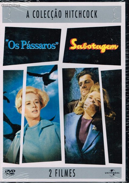 Preço: 10 €2 DVDs Hitchcock Pássaros + Sabotagem NOVO SELADO