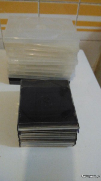 vendo 11caixas de dvd`s/cd`s (9 transparentes e 2 em preto) e 15 caixas cd`s/dvd`s finas.