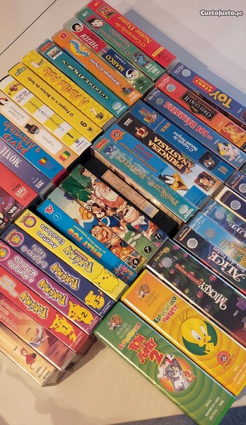 Pantera cor de rosa Loucas Aventuras - VENDIDO, Atlântida (2EUR), O Castelo Encantado da princesa cisne (2EUR), Scooby-Doo (2EUR), Dragon Ball Z Os grandes Rivais (3EUR), Dragon Ball Z Super Saya Son Goku - VENDIDO, Tintim A Ilha negra (4EUR), O conde de Monte Cristo - VENDIDO, David O anãozinho - VENDIDO, A joia encantada (2EUR), Uma Aventura na Terra dos Brinquedos (2EUR), Pokémon O grande Herói Pikachu (3EUR), Pokémon A Montanha Misteriosa (3EUR), Pokémon Os poderes de Pikachu (3EUR), Pokémon Aventura Escaldante (3EUR), Willy Fog 7 (3EUR), Dartacão 1 (4EUR), Pipi das meias altas (2EUR), Rua sésamo O Pompas e os Bichos da Seda (2EUR), A Abelha Maia (3EUR), Contos 4,7,11 (6EUR), O Rei Leão (2EUR), O príncipe Encantado (2EUR), Superestrelas de Animação Looney Tunes (4EUR), A princesa Anastasia - VENDIDO, Tom and Jerry 2 cassetes (5EUR), Espetáculo Tweety (5EUR), Mickey uma noite mágica (6EUR), Alice no País das Fadas (2EUR), Cinderela II (3EUR), A Maior Aventura do Ursinho (2EUR), Godzilla (4EUR), Teletubbies Brincando à Chuva (4EUR), Marco a Despedida (5EUR), O Capuchinho Vermelho (2EUR), O Corcunda de Notre Dame (3EUR), O Segredo do Pântano Perigoso (2EUR), Os 100 dálmatas (3EUR), O Rei leão II (4EUR), Toy Story 1 (VENDIDO) e 2 (3EUR), A Dama e o Vagabundo (3EUR), A Espada era a Lei (2EUR), Pocahontas (3EUR) e a Dama e o Vagabundo (3EUR).