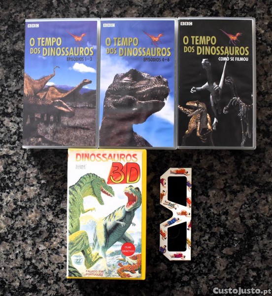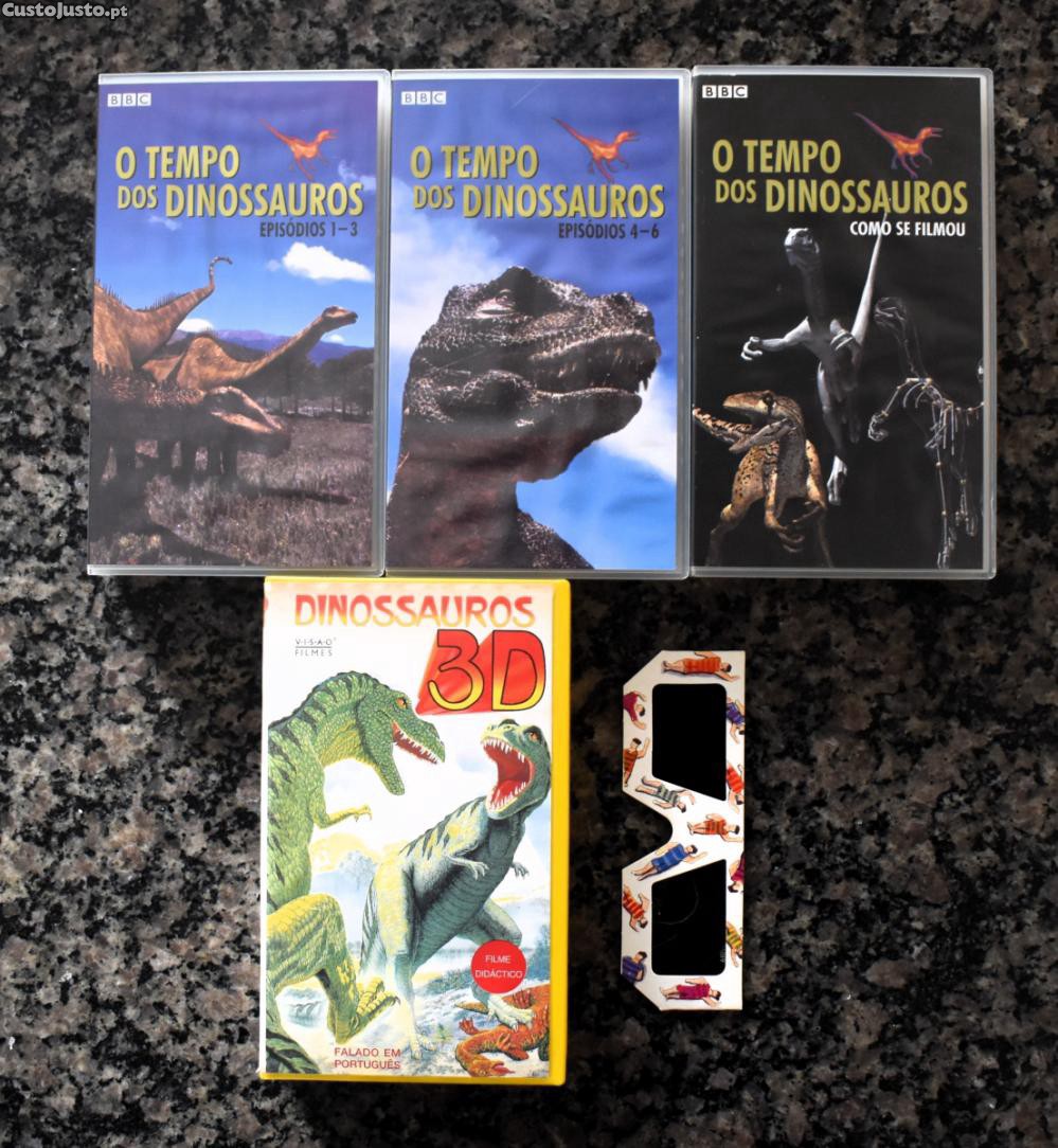 O Tempo dos Dinossauros (Walking with Dinosaurs), é a multipremiada série da BBC produzida em 1999. São 3 cassetes VHS com toda a série, apresentada em caixa arquivadora. Legendado. Distribuição: Lusomundo