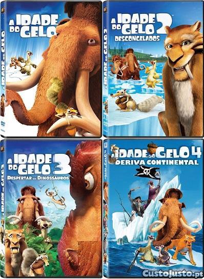 Preço: 50 €Pack com 4 DVDs: A Idade do Gelo 1, 2, 3 e 4 - NOVoS! SELADOS!