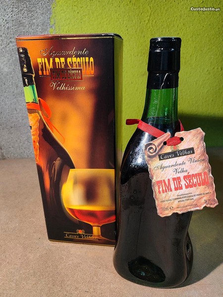 Garrafa de aguardente Fim do Século, na embalagem original, em excelente estado de conservação e selada.