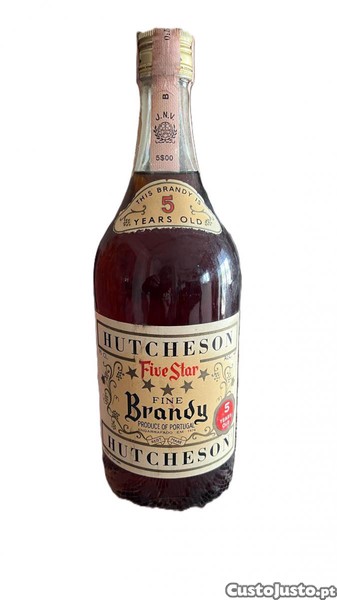 Preço: 100 €Brandy HUTCHESON Five star (bebida raríssima engarrafada em 1974)