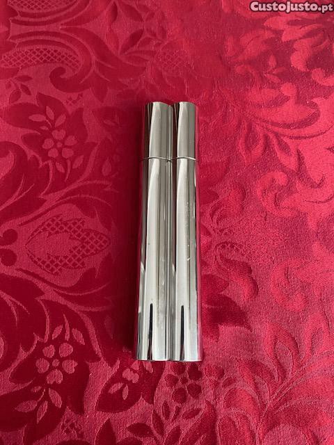 Charuteira e recipiente para bebida em aço inoxidável, sem uso.