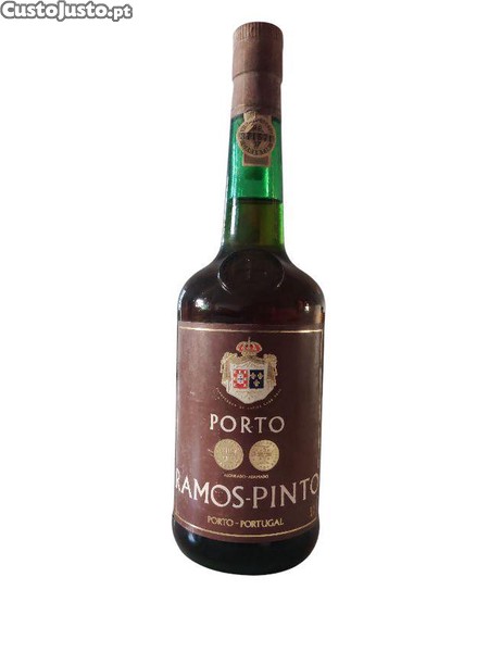 A imagem mostra uma garrafa de vinho do Porto da marca Ramos Pinto.