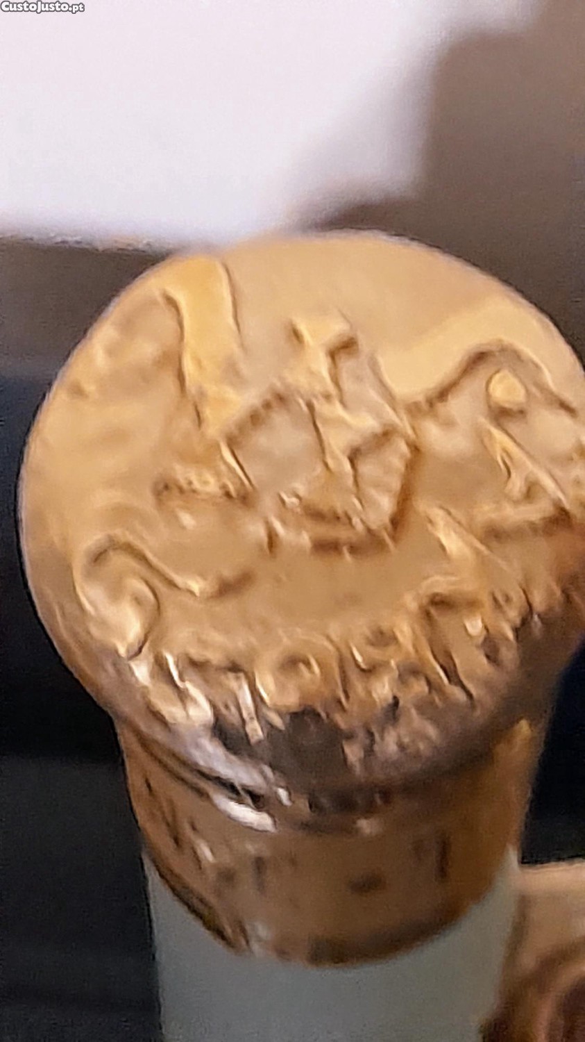 Preço: 75 €Garrafa Bacus Moscatel Teichenne. Garrafa longa com aplicações em estanho dourado, figuras em relevo e com 100 cl