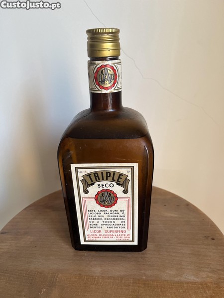 Garrafa (selada) de 1 l de licor superfino Triple seco (Alves, Oliveira e Leite, Lda., Porto).