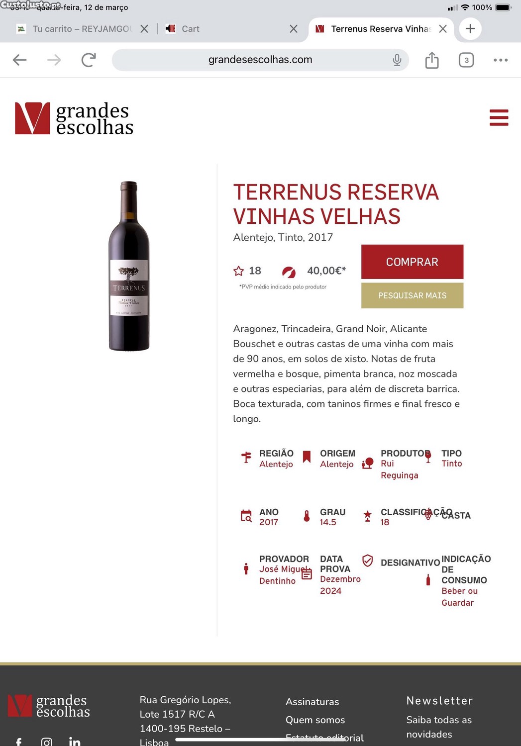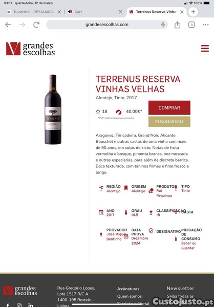 Preço: 35 €Terrenus vinhas velhas reserva 2015