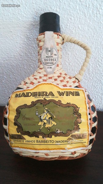 Garrafa revestida a palhinho, de 375 ml de vinho da Madeira, produzido e engarrafado por Barbeito.