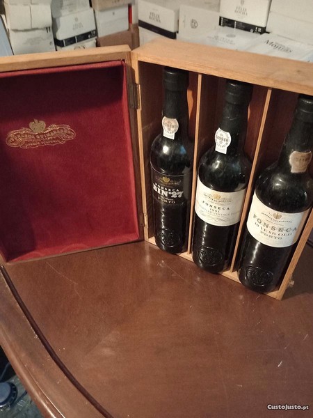 Colecionadores vendo estas três garrafas vinho do porto Fonsecas com caixa de madeira