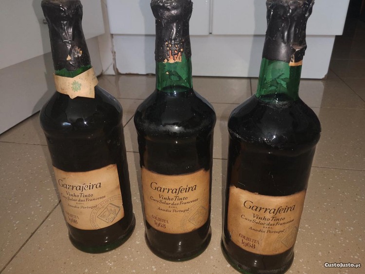 3x Garrafas de vinho tinto das Caves Solar das Francesas , Região Anadia , da colheita de 1968.