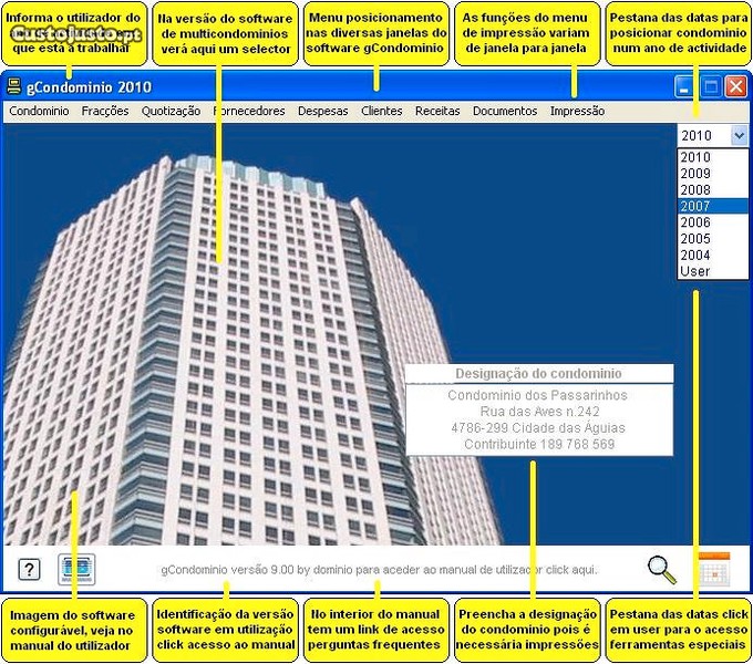 gCondominio software desenvolvido para a gestão e administração de condominios. Muito fácil de usar, muito rápido, eficaz, potente, robusto, estável, e seguro. Se nunca o experimentar pode ter a certeza de que não sabe o que perde.