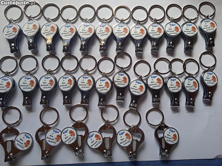 Porta Chaves Personalizados Estampados 3 em 1, porta chaves, abre caricas e corta unhas para lembranças Casamento, Batizados, Comunhões, Profissões de Fé e etc