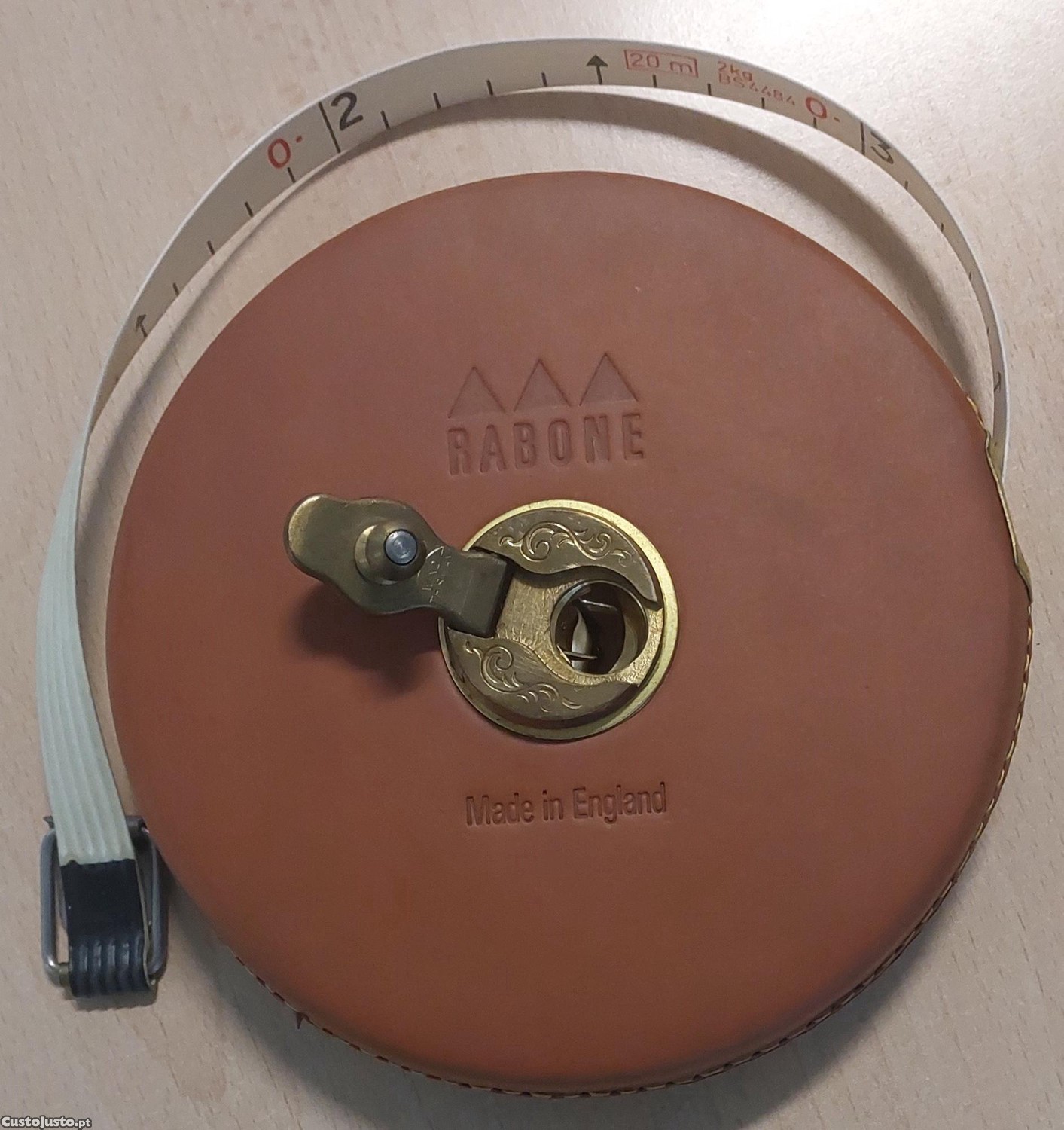 Preço: 30 €Fita Métrica Rabone 20 M - Fibra - Em Pele Genuína - Couro - (Vintage)