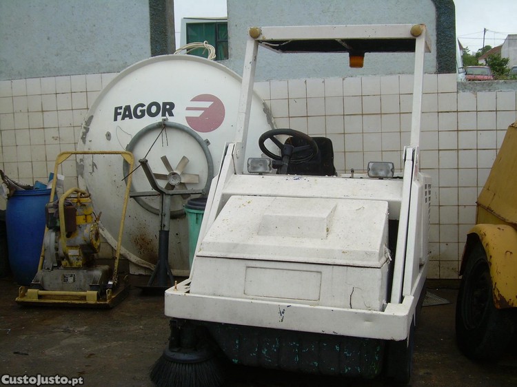 Vendo máquina de ócasião de aspirar e varrer com lugar sentado para o operador no estado em que se encontra. Iten : Auto-Aspiradora-Varredoura com lugar sentado para o operador Marca : TENNANT Model : POWER SWEEPER 235 ESPECIFICAÇÕES DA MÁQUINA Motor Marca : Yanmar Tipo de motor -- pistão Ignição --eléctrica a diesel Ciclo -- 4 Tempos Aspiração -- natural Cilindros -- 2 em linha Diâmetro interior -- 72 mm Curso -- 70 mm Cilindrada -- 575 cc Potência líquida -- 11 cv (8,2 kW) a 2200 rpm regulado Potência líquida -- 14 cv (10,4 kW) a 3200 rpm máximo Combustíveis -- Diesel Sistema de arrefecimento -- anticongelante Sistema elétrico -- 12 Volts nominal, alternador de 37 A SISTEMA DE TRANSMISSÃO Propulsão -- accionada por motor hidráulico Escova principal -- accionada por correia Escova lateral -- accionada por motor hidráulico Ventilador de vácuo -- accionado por correia Bomba hidráulica -- accionada por correia DIREÇÃO Tipo -- controlado pelas rodas traseiras, came automóvel e alavanca Fonte de energia -- manual SISTEMA HIDRÁULICO Função opera a propulsão, a elevação da tremonha, o accionamento das escovas laterais Válvula de controlo, elevação da tremonha, accionamento das escovas laterais centro aberto, tipo bobine simples Bomba, propulsão tipo de pistão de cilindrada variável, 0,85 pol³ (14 cc) máximo deslocamento por revolução, 9,1 gpm (35 L/min) a 2400 Pressão de alívio do sistema de propulsão 2000 psi (13.790 kPa) Bomba, acessórios tipo de engrenagem, 0,26 pol³ (4 cc) deslocamento, 1,1 gpm (4 Litros/minuto) a 1000 rpm Pressão de alívio do sistema de escovas laterais e cilindro de elevação - 1350 psi (9310 kPa) Motor, escovas laterais tipo de engrenagem interna, 2,8 pol³ (46 cc) por rotação, 2500 psi (17.240 kPa) pressão nominal máxima Cilindro, elevador de tremonha -- tipo de acção simples, diâmetro interior de 65 mm (2,5 pol.) x curso de 305 mm (12 pol.), haste de 30 mm (1,125 pol.), 3000 psi (20.685 kPa) pressão nominal máxima. Filtro -- tipo spin-on, nominal de 10 microns, pressão de bypass de 170 kPa (25 psi) SISTEMA DE SUSPENSÃO Dianteira -- pneus maciços 15 x 3,00 (2 pneus) Traseira -- pneu pneumático 4,80 x 8 (1 pneu) CAPACIDADES DE FLUÍDO DO SISTEMA Sistema hidráulico reservatório 14,8 Litros Sistema hidráulico total 16,7 Litros Óleo lubrificante do motor, com filtro 3 Litros Sistema de arrefecimento do motor 3 Litros Depósito de combustível 28 L DIMENSÕES GERAIS DA MÁQUINA Comprimento 1970 mm Largura com escova lateral 1220 mm Altura sem protecção superior 1345 mm Altura com protecção superior 2020 mm Passadeira dianteira 1115 mm Distância entre eixos 1040 mm (41 pol) Escova principal largura 91 cm (36 pol) (915 mm) Diâmetro exterior da escova principal -- 355 mm Diâmetro rotativo da escova lateral -- 480 mm Largura do percurso de varrimento (total) -- 1220 mm Capacidade da balde -- 0,28 m³ (10 pés cúbicos) 650 lb (295 kg) Filtro de pó -- 4,5 m² (49 pés quadrados), elemento filtrante de painel plissado PESOS DA MÁQUINA Peso líquido, seco -- 835 kg PBV (Peso Bruto Bruto) -- 1260 kg DESEMPENHO GERAL DA MÁQUINA Velocidade máxima de avanço -- 10 km/h Velocidade máxima de marcha-atrás -- 5 km/h Velocidade máxima de avanço com a caçamba ou tremonha elevada -- 3,2 km/h Raio de viragem -- esquerda, 1525 mm) à direita, 78 pol (1980 mm) Ângulo máximo de subida e descida nominal -- 10
