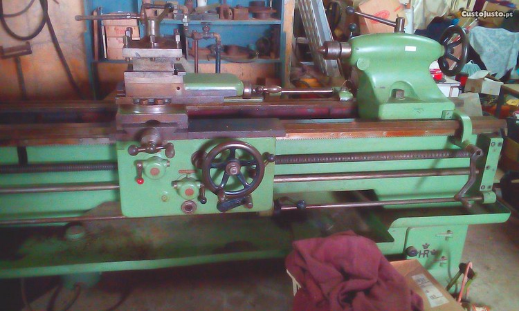 Torno fabrico sueco em muito bom estado com lunetas e barra de cones.