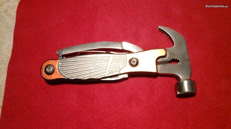 Ferramenta multifunções de marca boa qualidade e resistência, nada de chinês, com Martelo alicate serra e outras chaves como mostram fotos em estado novo nunca utilizado.Útil e prático para casa ou carro.