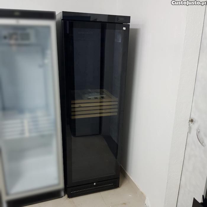 N387- Armário expositor para vinhos. Interior e exterior negro, com 5 prateleiras em madeira. Termostato eletrónico. Refrigeração ventilada.