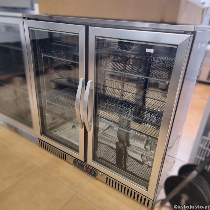 N586- Armário refrigerado de bar com 2 portas de vidro, exterior em inox e 2 prateleiras. Com iluminação.