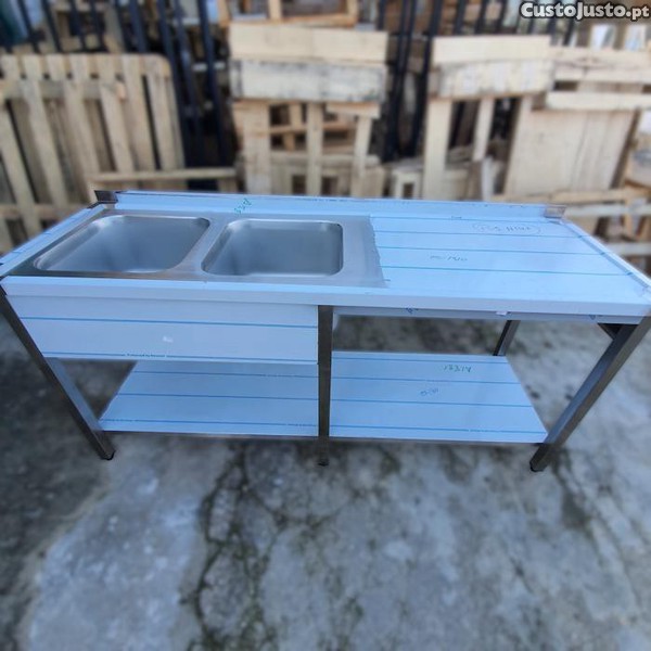 Bancada em inox com 2 cubas 40x40cm (1800x600x850mm)